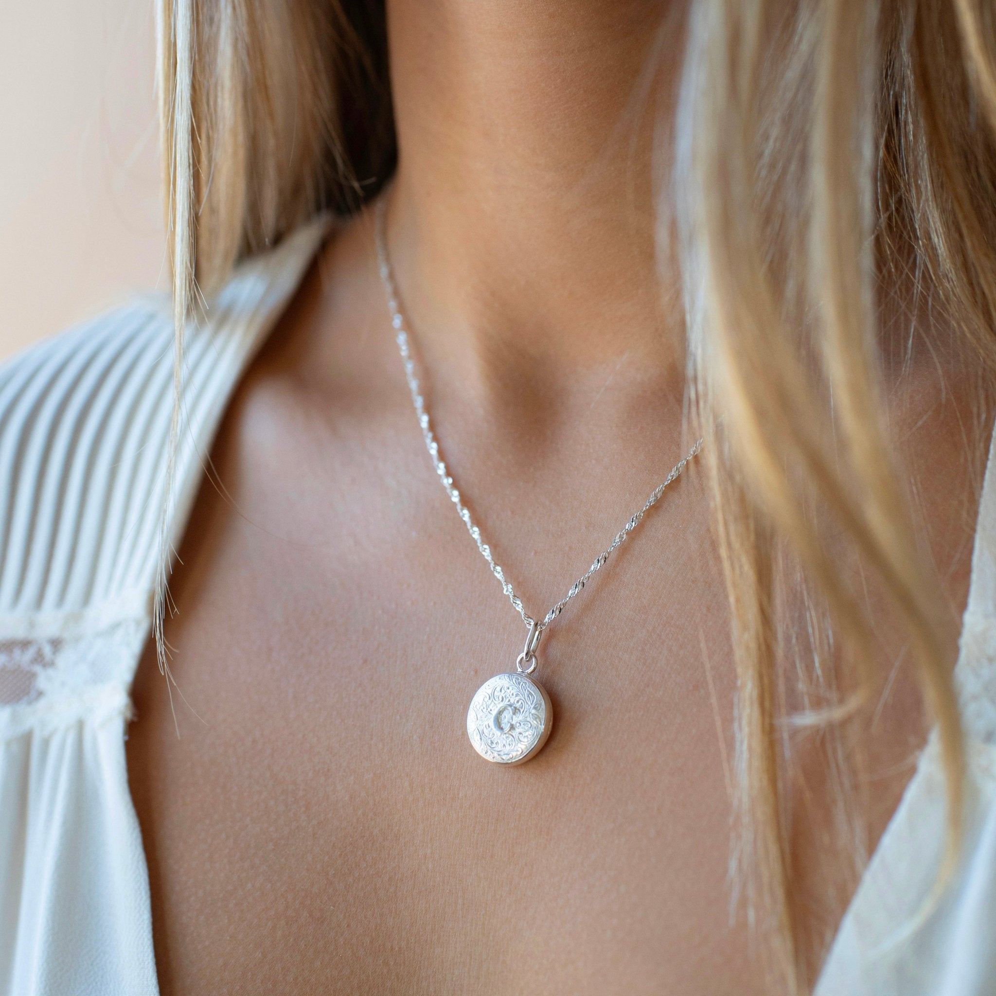 Celebrate your story or give a meaningful gift with this vintage monogram locket that’s personalized with your letter or theirs. Whether it’s your initial, a loved one’s, or a family name that holds meaning, this locket is designed to hold what matters most: memories, photos, and keepsakes close to your heart. It isn't just jewelry, it's a sentimental statement and heirloom made to be cherished for years to come. Each locket comes with a monogram postcard, perfect for adding a handwritten message or framing as a keepsake.