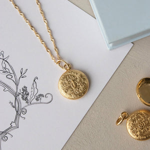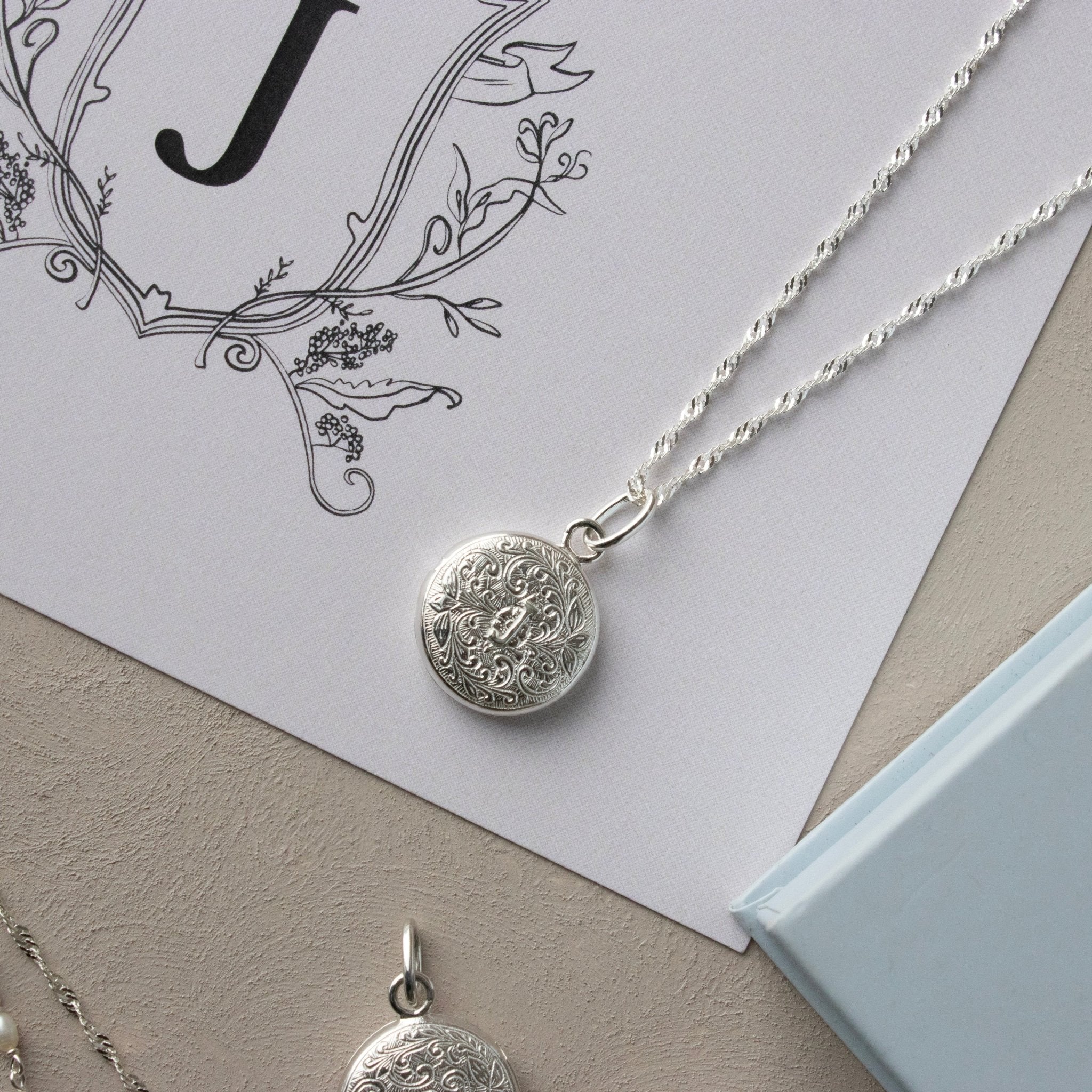 Celebrate your story or give a meaningful gift with this vintage monogram locket that’s personalized with your letter or theirs. Whether it’s your initial, a loved one’s, or a family name that holds meaning, this locket is designed to hold what matters most: memories, photos, and keepsakes close to your heart. It isn't just jewelry, it's a sentimental statement and heirloom made to be cherished for years to come. Each locket comes with a monogram postcard, perfect for adding a handwritten message or framing as a keepsake.