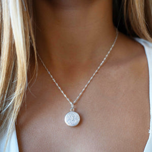 We love that this locket comes off the chain and can be worn on our other chains or all on its own (see photos). Click here for a tutorial on printing a photo and putting it in your locket.