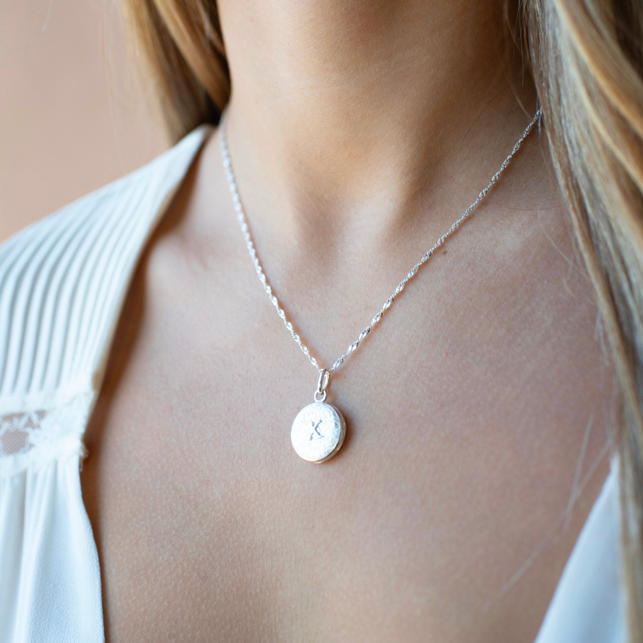 Celebrate your story or give a meaningful gift with this vintage monogram locket that’s personalized with your letter or theirs. Whether it’s your initial, a loved one’s, or a family name that holds meaning, this locket is designed to hold what matters most: memories, photos, and keepsakes close to your heart. It isn't just jewelry, it's a sentimental statement and heirloom made to be cherished for years to come. Each locket comes with a monogram postcard, perfect for adding a handwritten message or framing as a keepsake.