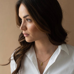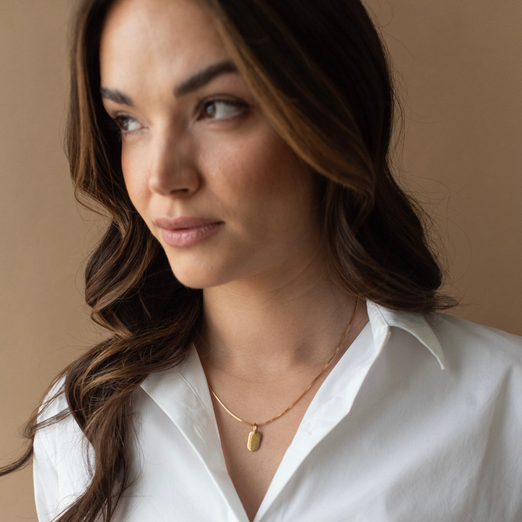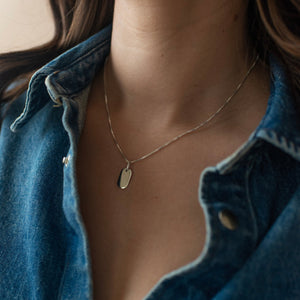 This oval ID charm is a refined essential designed with soft sculptural lines and a timeless silhouette. Measuring 15 mm in length, this modern oval charm offers a polished, understated presence that layers effortlessly or stands beautifully on its own.