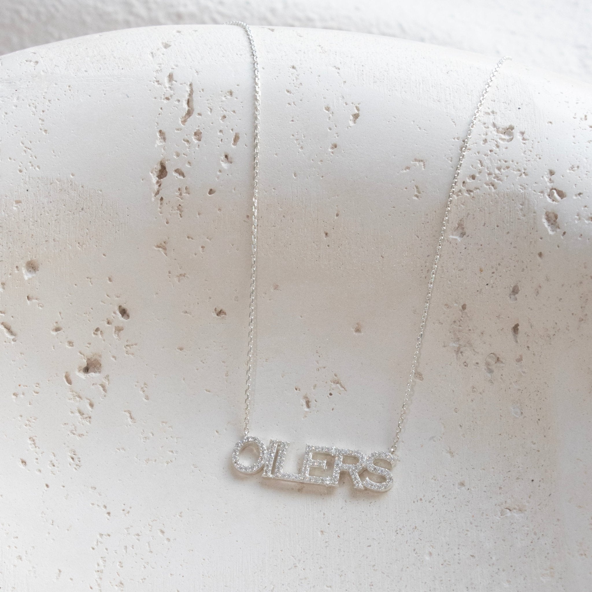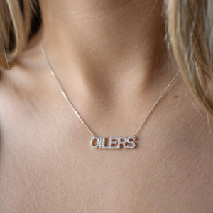 Show your team pride with this sparkly Edmonton Oilers pavé necklace. We love how delicate this piece is and how wonderful it looks all on its own or layered with the other two necklaces in this series. It's the perfect piece to elevate your style from game day to every day.