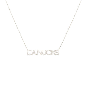 • A cubic zirconia pavé CANUCKS pendant with a dainty diamond link cable chain.