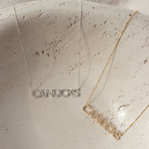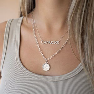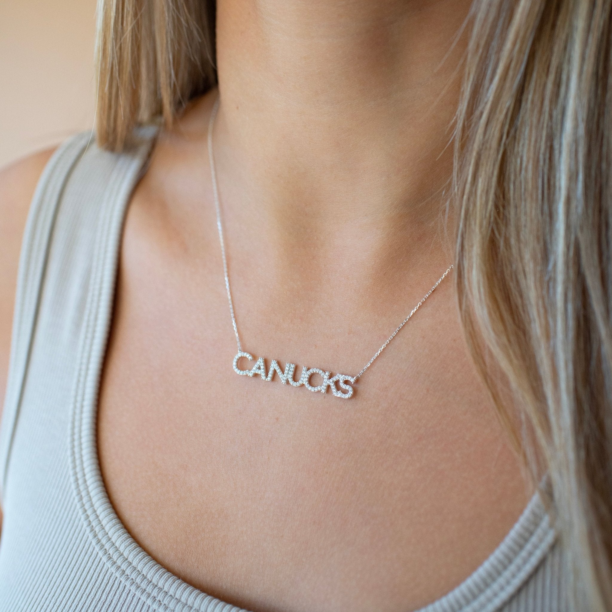 Show your team pride with this sparkly Vancouver Canucks pavé necklace. We love how delicate this piece is and how wonderful it looks all on its own or layered with the other two necklaces in this series. It's the perfect piece to elevate your style from game day to every day.