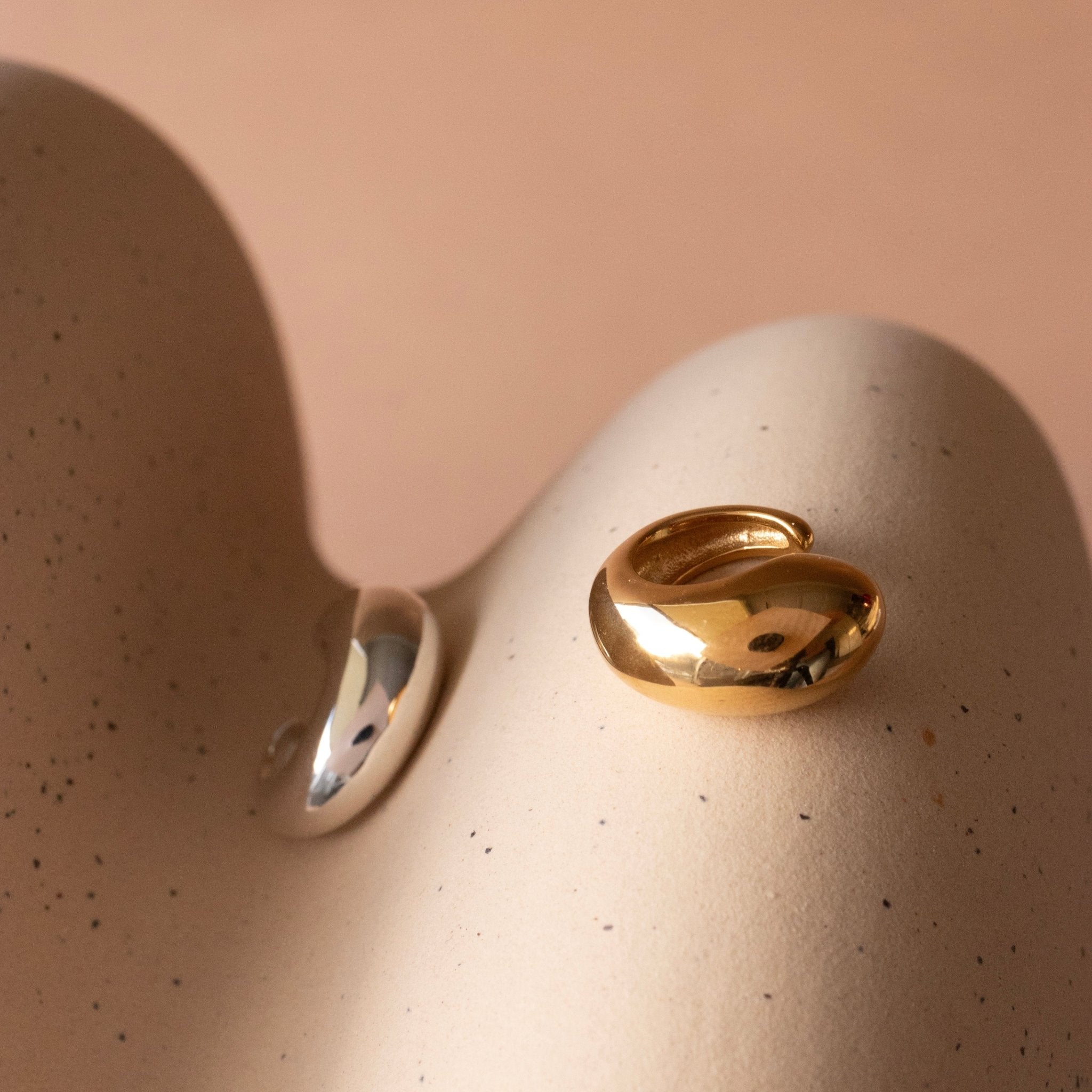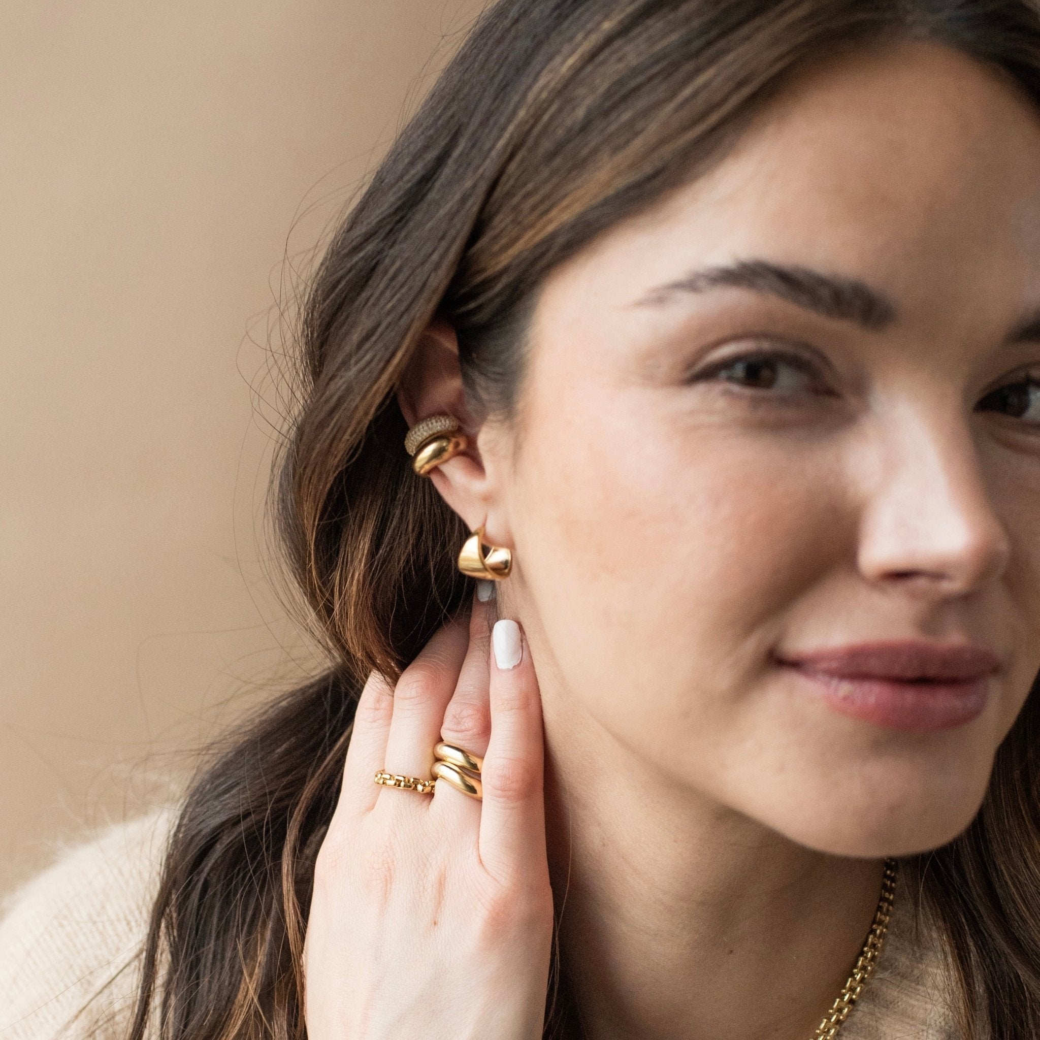 A modern take on a classic ear cuff, the Poise Sculpted Ear Cuff features a softly contoured sculptural silhouette with a bold yet refined feel. Designed to slide on easily and feel secure during wear, this piece offers effortless style with no piercing required.