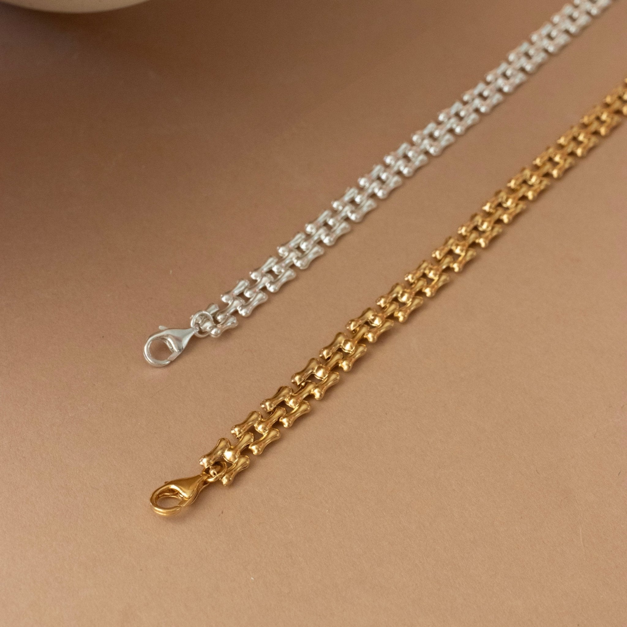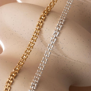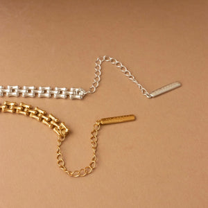 The Fearless Panther Chain Necklace is a statement of strength and confidence. Designed with bold sculptural links, this chain lays flat against the neckline for a sleek, fluid fit that feels as powerful as it looks. Its substantial 8 mm width gives the piece a strong presence while remaining refined and wearable.