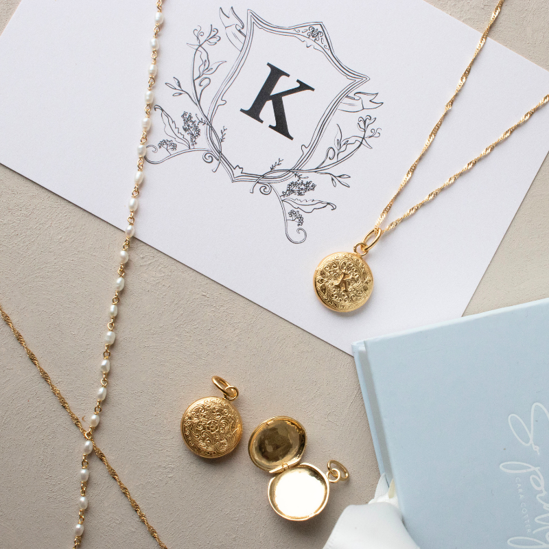 Each monogram locket from this series comes with a monogram postcard, perfect for adding a handwritten message or framing as a keepsake. And don’t worry we have a lovely postcard for the rest of the items too!