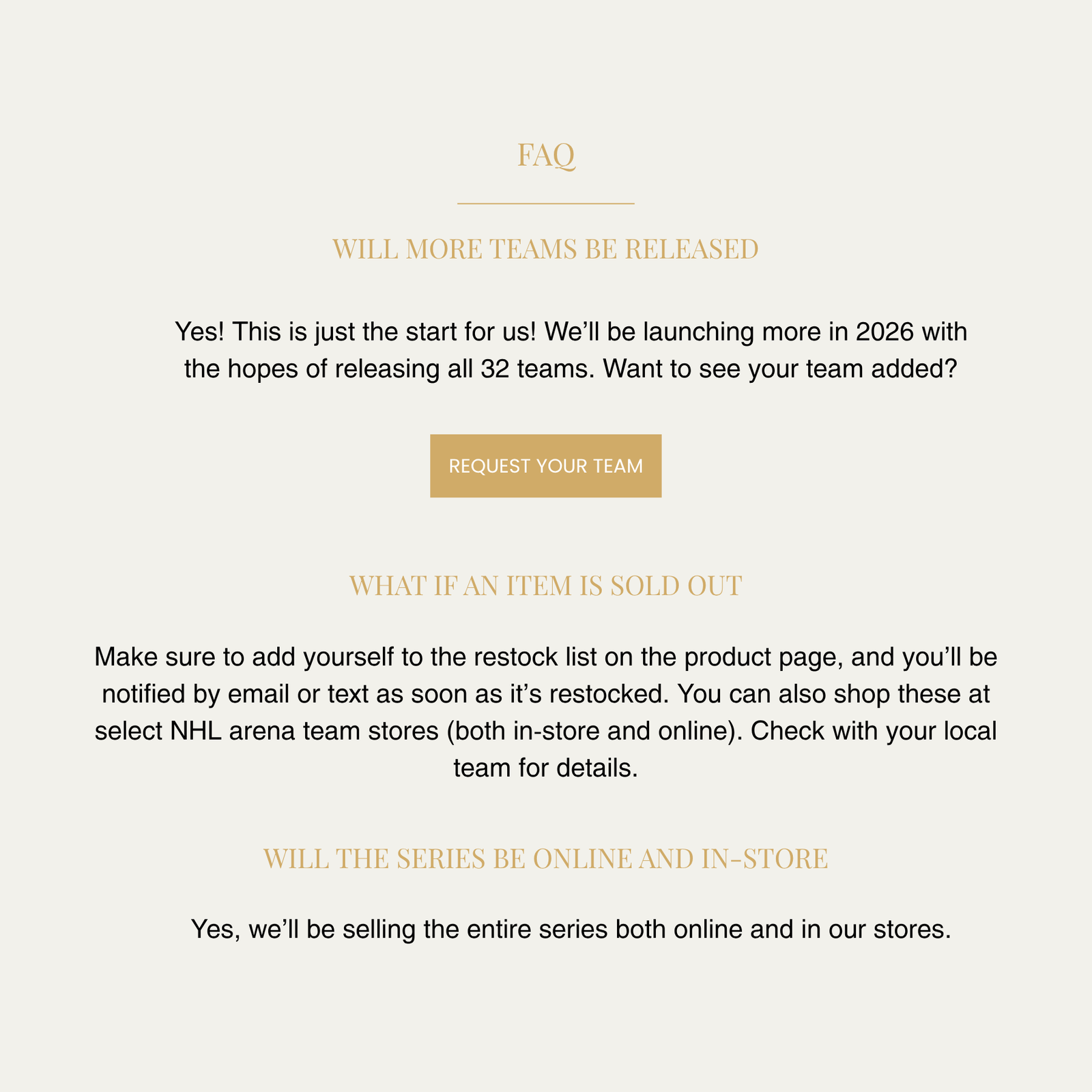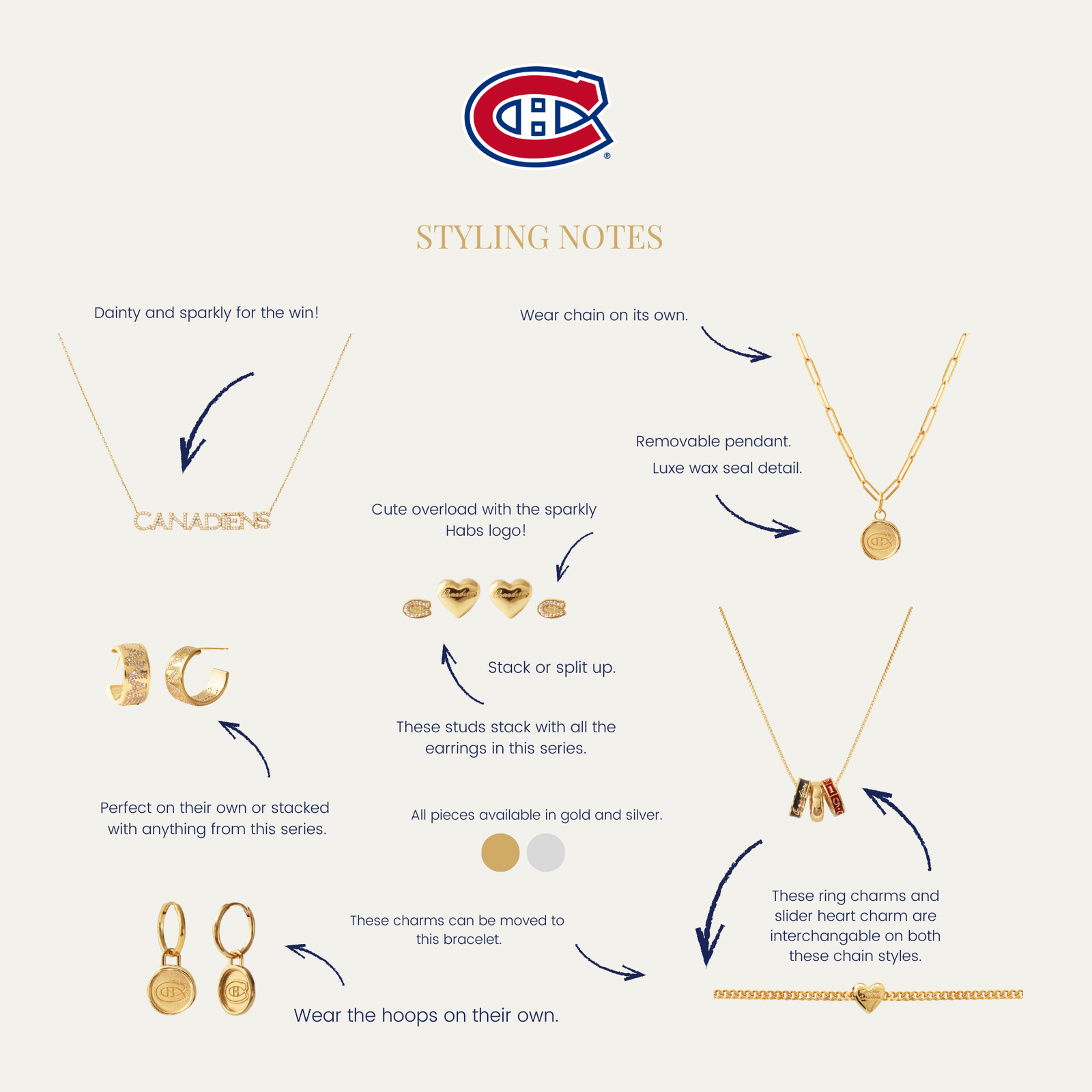 Our debut collection as an official NHL licensee was created for fans to celebrate their love of the game through thoughtfully designed, high-quality pieces that can be cherished both on and off the ice. Whether you’re looking for something to wear to the game or in your everyday life, we’ve designed these pieces for you to mix, match, remove and add as you wish.