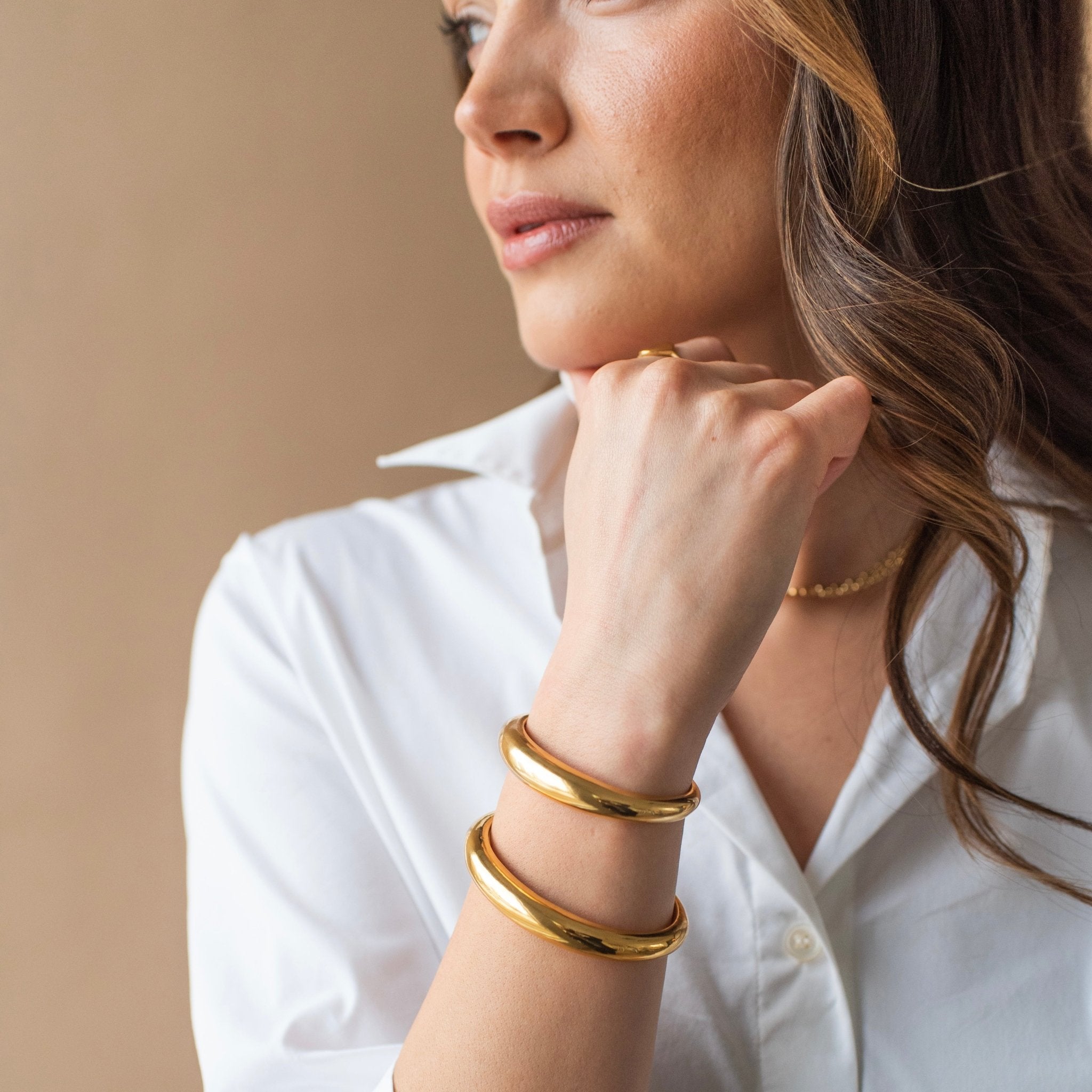Designed as part of our Sculpted Metal Series, Poise brings modern strength and timeless polish to everyday styling. Wear it alone, stack multiples of these for a confident statement, or layer with finer bracelets for contrast.