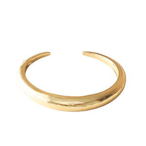 This cuff is a bold yet refined statement piece designed with a softly contoured sculptural form. Crafted to feel substantial while remaining comfortable, this cuff features a discreet spring-tip opening that allows it to slip on and off with ease while staying secure on the wrist throughout wear.