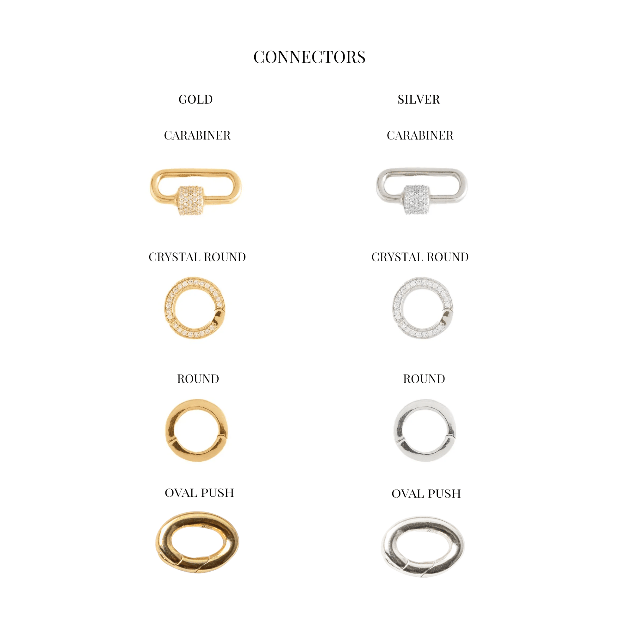 Charm can come off and our chains in this series and move around as needed. The oval bail has an opening of 4 x 5 mm. Purchase our mini oval push connectors for even more options when moving it around.