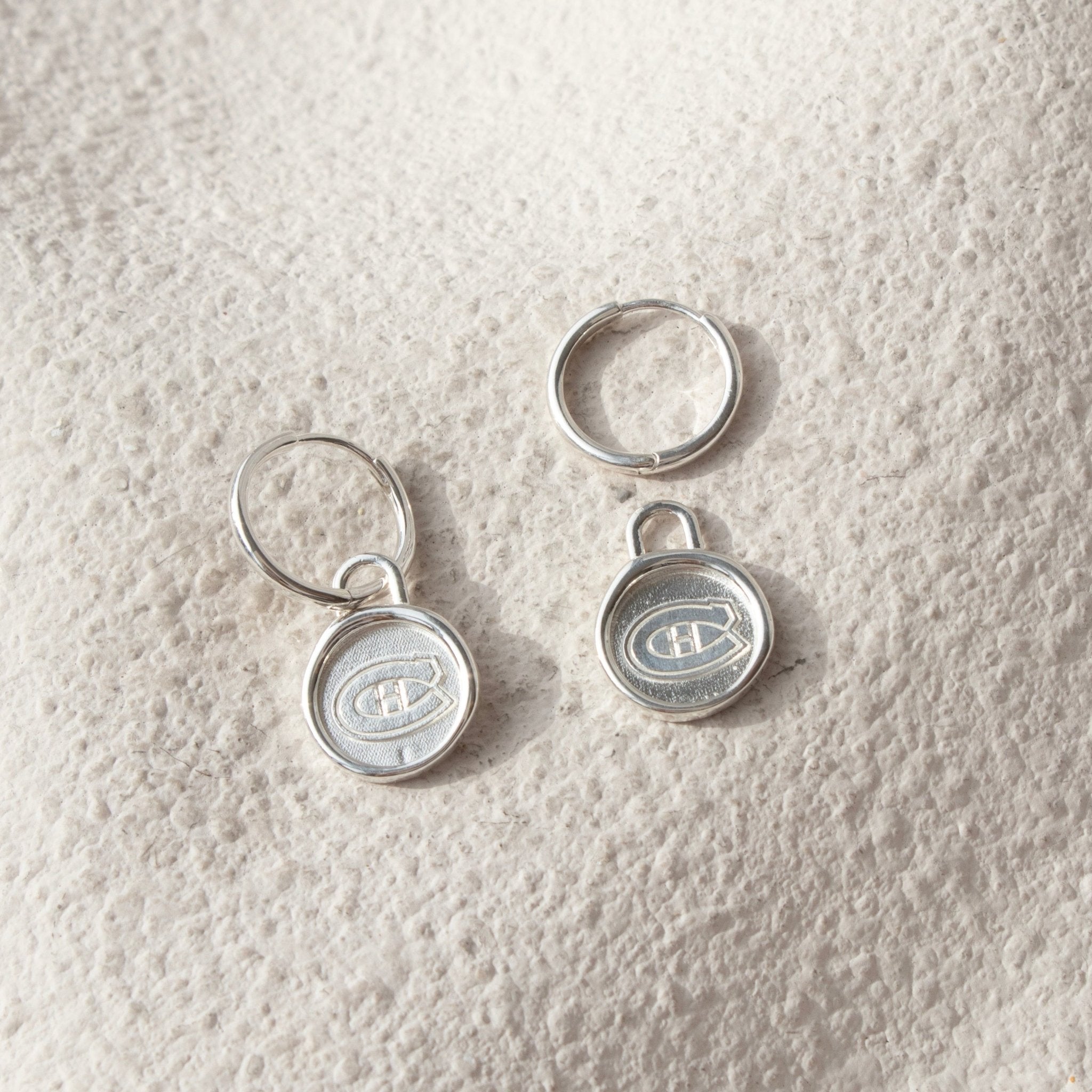 Show your team pride with these Montréal Canadiens logo charm hoop earrings. We love that the charm can be removed and added to the bracelet or chain necklaces in this series, or the hoops can be worn on their own. They are the perfect piece to elevate your style from game day to every day.