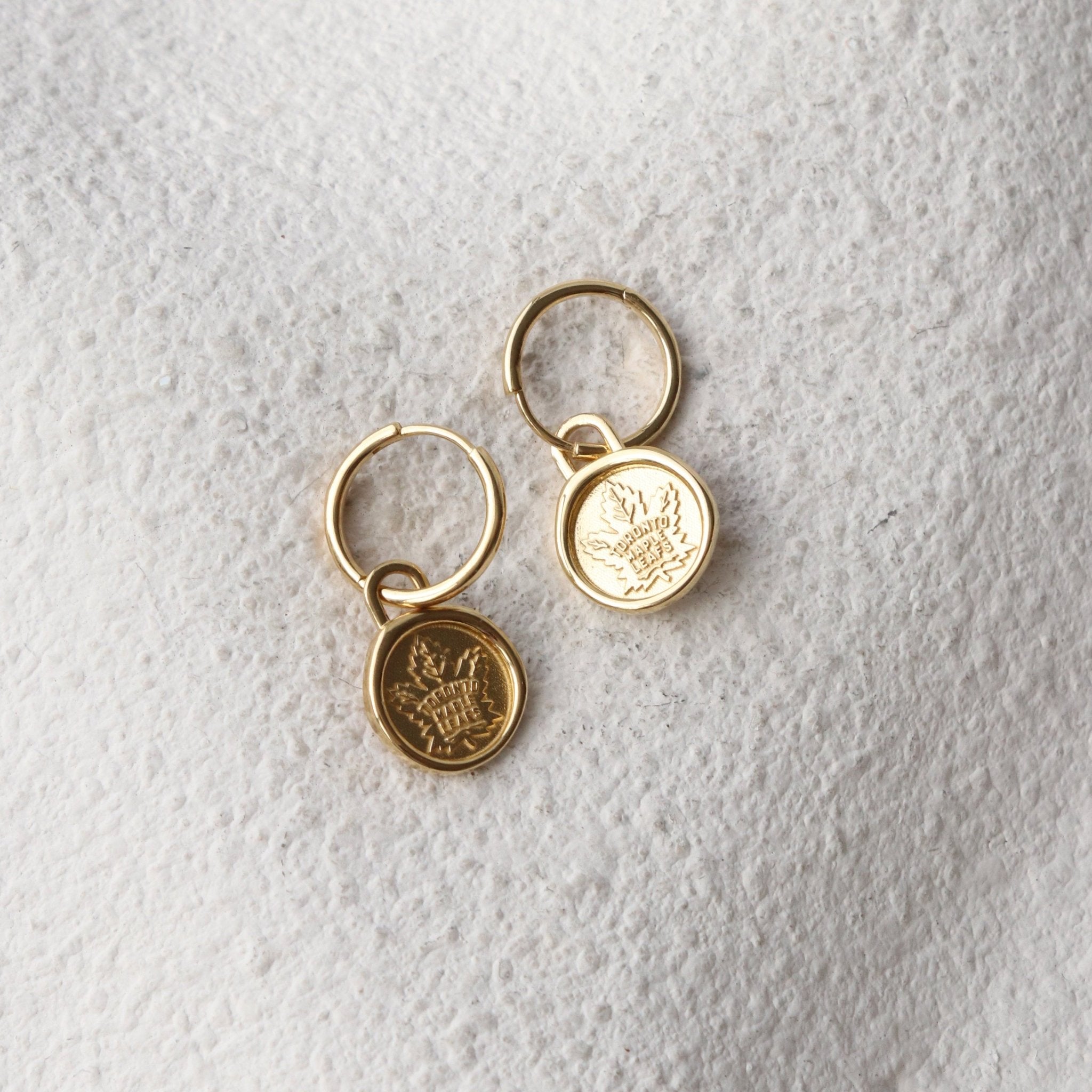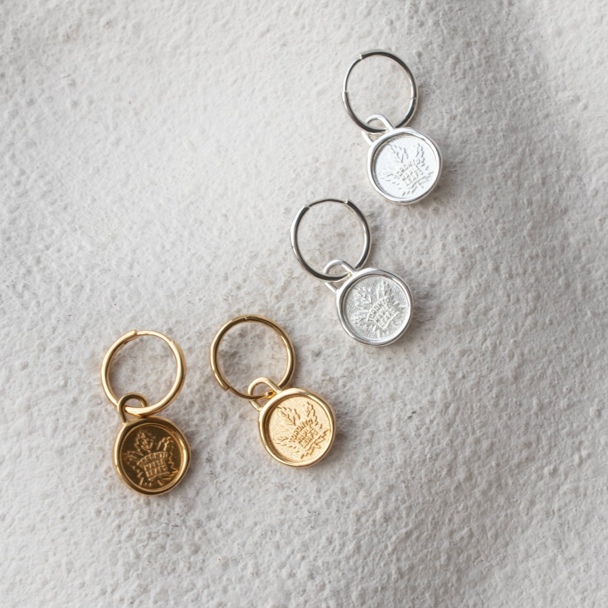 Show your team pride with these Toronto Maple Leafs logo charm hoop earrings. We love that the charm can be removed and added to the bracelet or chain necklaces in this series, or the hoops can be worn on their own. They are the perfect piece to elevate your style from game day to every day.
